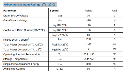 ZM027N03B TO-263 30 ±20 1.2/1.6/2.5 2.7/3.6 4.1/5.5 - - 140