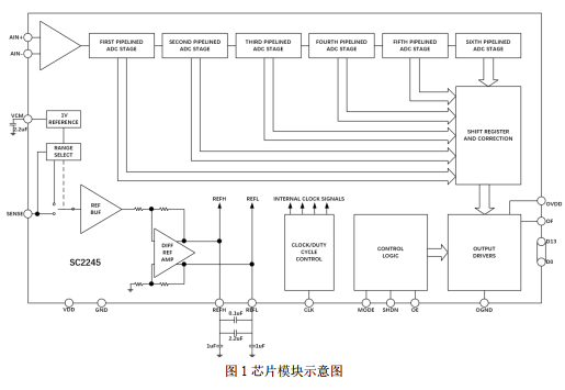 SC2245 是一款 14 位 10Msps 低功耗 3V 模擬電源供電, 3V 數(shù)字電源供電的模數(shù)轉(zhuǎn)換器,專為數(shù)字化高頻寬動(dòng)態(tài)范圍信號(hào)而設(shè)計(jì)。 SC2245 非常適合要求苛刻的成像和通信應(yīng)用, 其交流性能,包括 77dB 信噪比和 82dB 無(wú)雜散動(dòng)態(tài)范圍,用于遠(yuǎn)遠(yuǎn)超過(guò)奈奎斯特頻率的信號(hào)。直流規(guī)格包括±1LSB INL(典型值), ±0.25LSB DNL(典型值) 和無(wú)漏失碼。 轉(zhuǎn)換噪聲很低,僅為0.98LSBRMS。一個(gè)單獨(dú)的輸出電源使輸出能驅(qū)動(dòng) 0.5V 至 3.6V 邏輯電路.一個(gè)單端 CLK 輸入負(fù)責(zé)控制轉(zhuǎn)換器運(yùn)作。一個(gè)任選的時(shí)鐘占空比穩(wěn)定器在全速和多種時(shí)鐘占空比條件下實(shí)現(xiàn)了高性能。