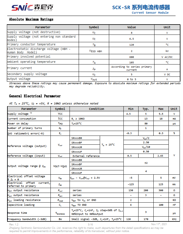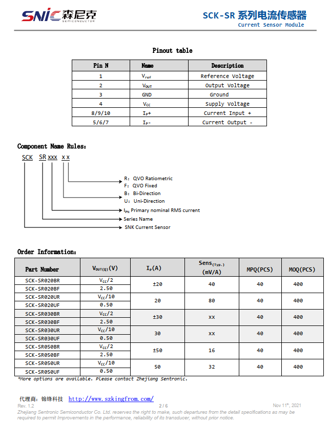 森尼克SCK-SR系列開環電流傳感器型號如下: