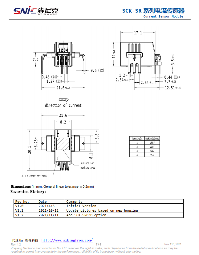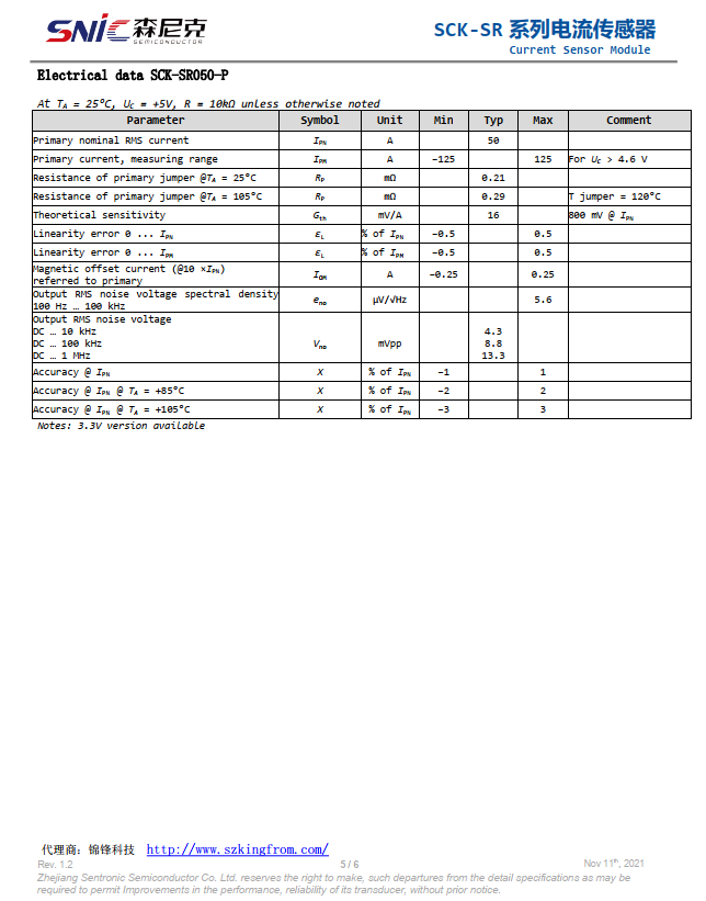SCK-SR Series current sensor module is for the electronic measurement of current:DC, AC, pulsed..., with galvanic separation between the primary and the secondary circuit. This small size, cost-effective product can also provide a variety of output modes.