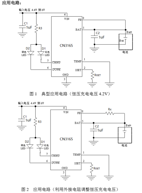 恒壓充電電壓 4.2V,也可通過一個(gè)外部電阻向上調(diào)整