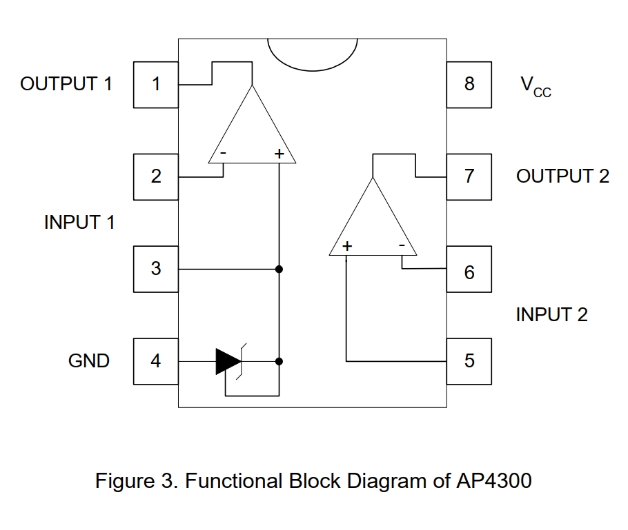 The AP4300 is available in standard packages of DIP-8 and SOIC-8.