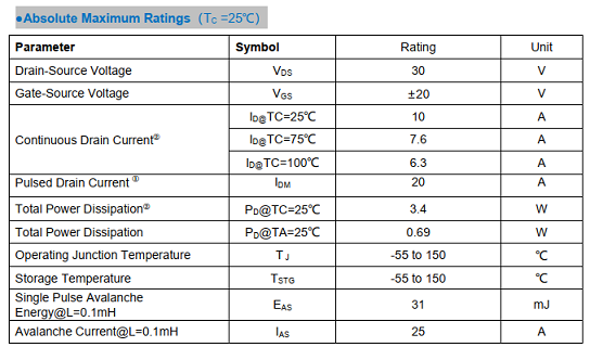 ZMS016N03P TO-220 30 ±20 1.2/1.6/2.5 1.6/2.1 2.2/2.6 - - 170