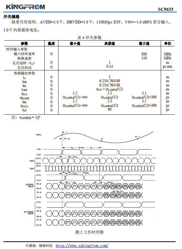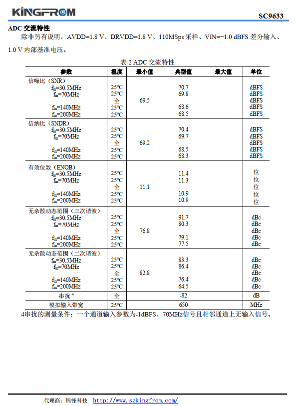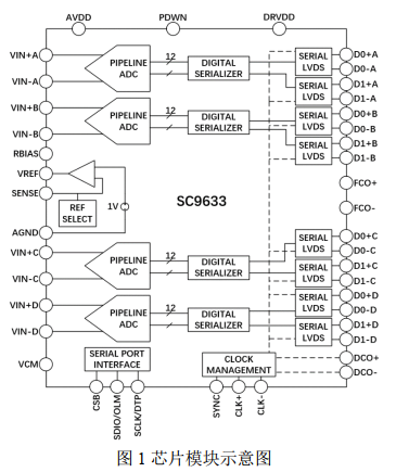 SC9633 國產替代美國 ADI AD9633 四通道 12 位 80/100/110MSps ADC主要性能