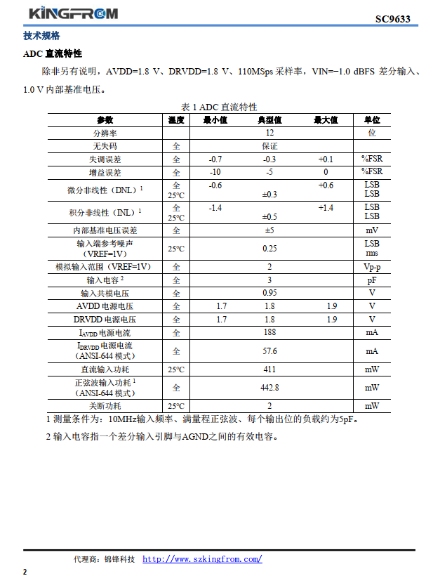 SC9633是一款4通道、 12位、 80MSps/100MSps/110MSps模數轉換器(ADC),內置采樣保持電路,專門針對低成本、低功耗、小尺寸和易用性而設計。該產品轉換速率最高可達110MSps,具有杰出的動態性能與低功耗特性。