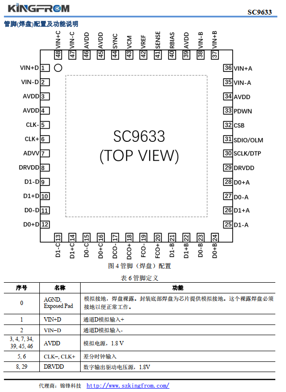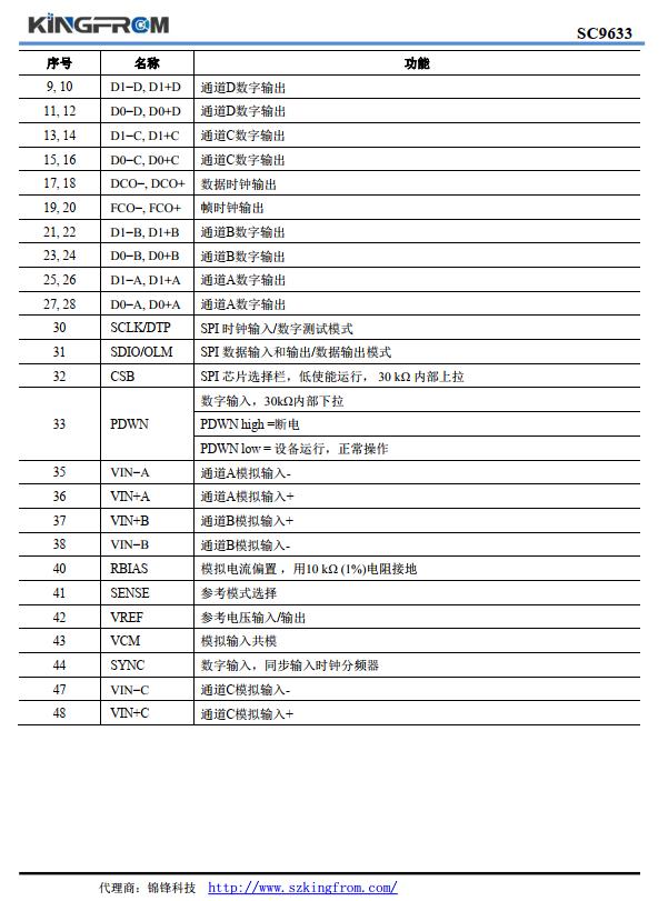 SC9633采用符合Rohs標準的48引腳的QFN封裝。 額定溫度范圍為-40℃至+85℃。