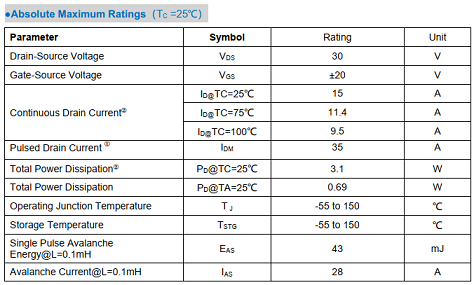 ZM015N03D TO-252 30 ±20 1.2/1.6/2.5 1.8/2.3 2.4/2.9 125