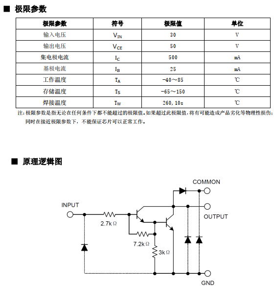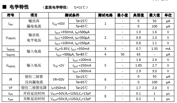 ● 寬輸入耐壓:0~30V,Ta=25℃ ● 輸出關閉狀態耐壓:50V Ta=25℃● 輸出最大電流:500MA,Ta=25℃ ● 輸入兼容 TTL/CMOS 邏輯信號