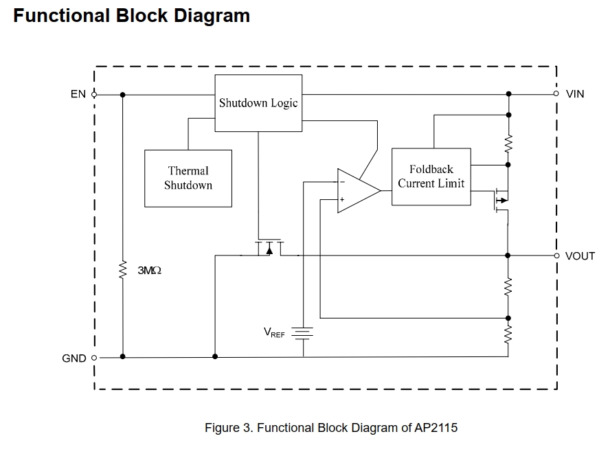 The AP2115 is available in 1.2V, 1.8V, 2.5V and 3.3V regulator output, and available in excellent output accuracy ±1.5%, it is also available in an excellent load regulation and line regulation performance.