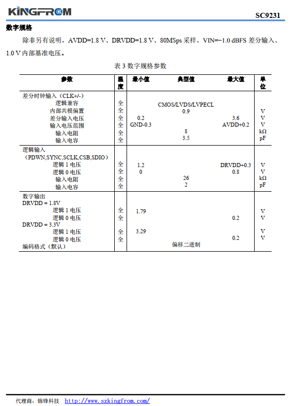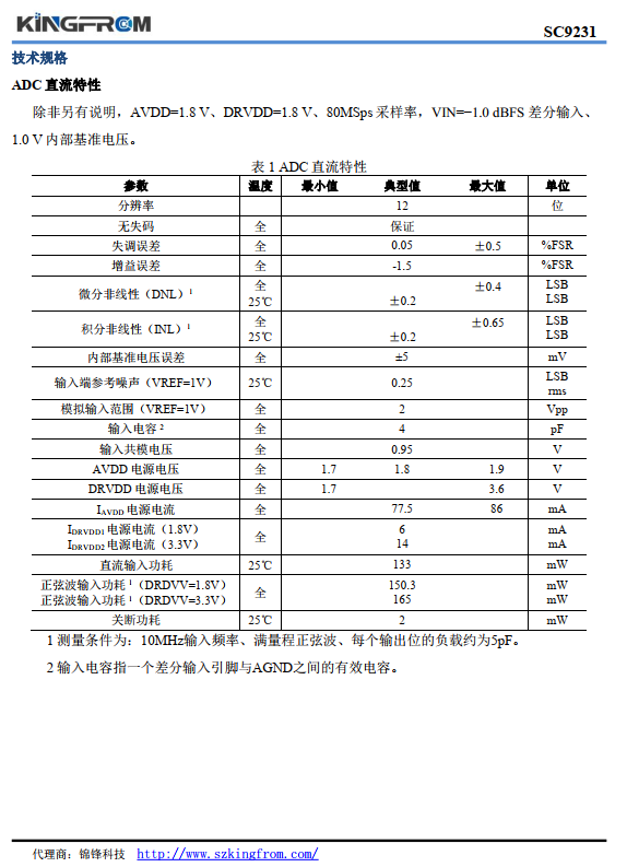 SC9231 是一款單芯片、雙通道、 12 位、 20MSPS/40MSPS/65MSPS/80MSPS 模數轉換器(ADC),采用 1.8V 電源供電,內置高性能采樣保持電路和片內基準電壓源。