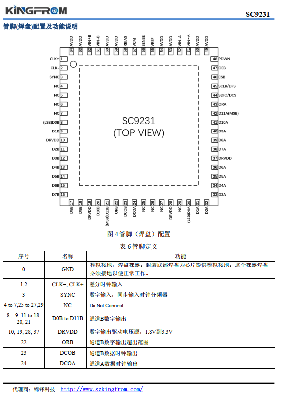 SC9231 采用符合 RoHS 標準的 64 引腳的 QFN 封裝。