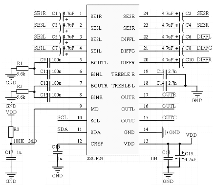 AiP1118是一種具有輸入信號選擇、音量、高音、低音和混音控制的音頻處理電路,適用高品質(zhì)的便攜式音響系統(tǒng)中。該電路還提供了輸入增益選擇和音源檢測功能。所有的控制均通過可與微機連接的串行I2C總線來操作。