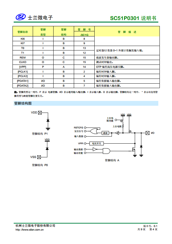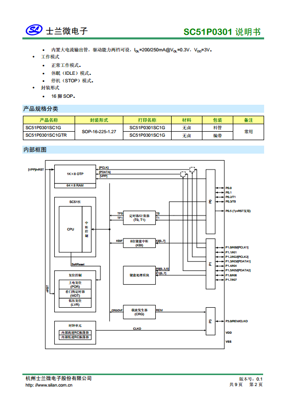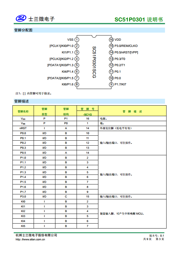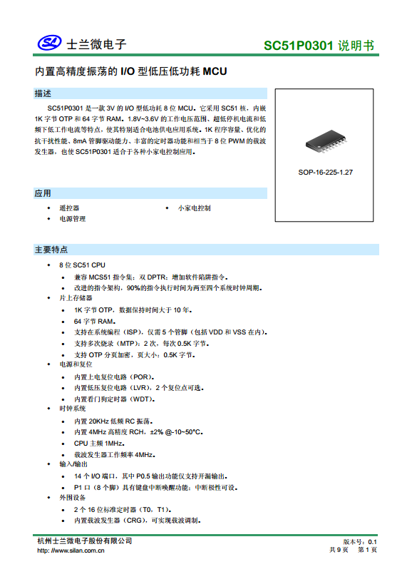 SC51P0301 內(nèi)置高精度振蕩的I/O型1K字節(jié)OTP低壓低功耗MCU