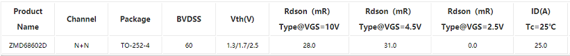 真茂佳ZMD68602D TO-220-4 60V/60V 28mΩ/28mΩ Vth1.7 筋膜槍雙N(N+N)溝道電機驅動MOS管 真茂佳一級代理商 完全替代新潔能、后羿、銳駿,可用于筋膜槍,電機驅動,無線充,電子煙,鋰電保護,PD快充,DCDC車充等市場應用;