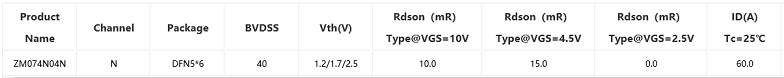 真茂佳ZM074N04N 40V 10mR Vth1.2/1.7/2.5 馬達電機N溝道MOS管,可用于筋膜槍、電動工具等市場應用;
