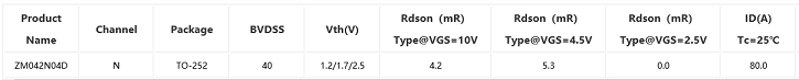 真茂佳ZM042N04D 40V 4.2mR Vth1.2/1.7/2.5 馬達電機驅(qū)N溝道MOS管,可用于筋膜槍、電動工具等市場應(yīng)用;