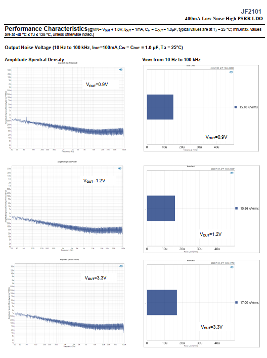 ? Output Noise: 10μVrms(10-100KHz, 0.9V output voltage settings, typ.)