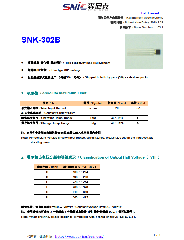 SNK-302B國(guó)產(chǎn)替代HW-322B/SH-44C/NHE313銻化銦線性霍爾元件傳感器