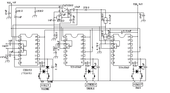 TC9153/CD9153是C2MOS工藝設(shè)計的電子音量控制電路。