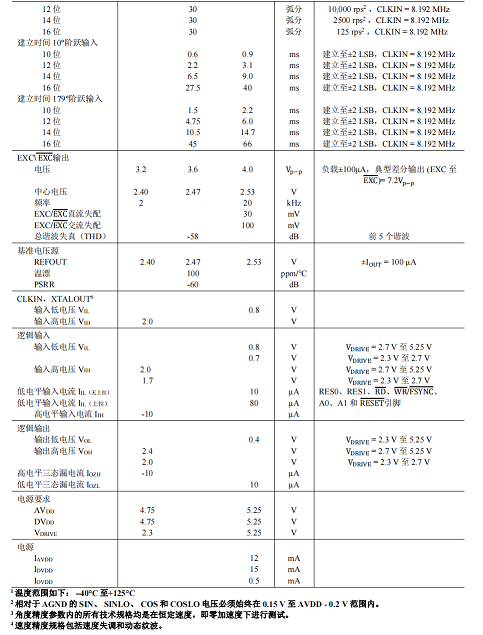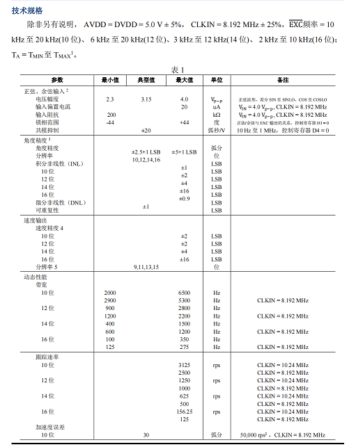 3. 輸入信號范圍。正弦和余弦輸入端支持 3.15 Vp?p ± 27%的差分輸入電壓。