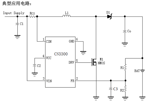 CN3300是一款工作于4V到28V的PFM升壓型電池充電控制集成電路。 CN3300內(nèi)部集成有基準(zhǔn)電壓源,+5V電壓調(diào)制單元,電感電流檢測(cè)單元,電池電壓檢測(cè)電路和片外N溝道MOSFET驅(qū)動(dòng)電路等,具有外部元件少,電路簡(jiǎn)單等優(yōu)點(diǎn)。當(dāng)接通輸入電源時(shí),CN3300進(jìn)入充電狀態(tài),控制片外N溝道MOSFET導(dǎo)通,電感電流上升,當(dāng)上升到外部電流檢測(cè)電阻設(shè)置的上限時(shí),片外N溝道MOSFET截止,電感電流下降,電感中的能量轉(zhuǎn)移到電池中。當(dāng)電感電流下降到外部電流檢測(cè)電阻設(shè)置的下限時(shí),片外N溝道MOSFET再次導(dǎo)通,如此循環(huán)。電池電壓通過電阻分壓網(wǎng)絡(luò)反饋到FB管腳,當(dāng)FB管腳電壓達(dá)到1.205V(典型值)時(shí),充電過程結(jié)束,片外N溝道MOSFET保持截止?fàn)顟B(tài)。當(dāng)FB管腳電壓下降到再充電閾值時(shí),CN3300再次進(jìn)入充電狀態(tài)。CN3300最高工作頻率可達(dá)1MHz,工作溫度范圍從-40℃到+85℃。CN3300采用6管腳的SOT23封裝。