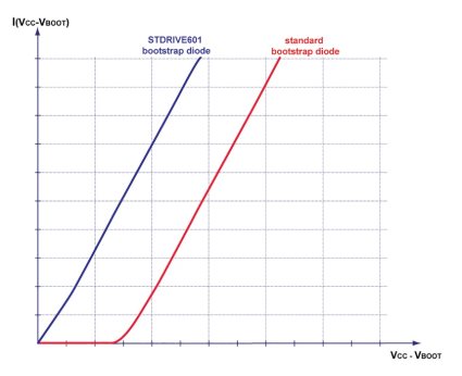 圖4 STDRIVE601自舉二極管和傳統(tǒng)自舉二極管對比