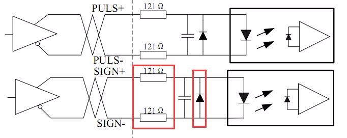 2)、在用差分信號來驅動后級,如光耦時。在接收端,要考慮到光耦的最大正向電流,因此需要在Y、Z線上接限流電阻;還要考慮到防止光耦前級發光二極管被反向擊穿,所以要在Y、Z之間反向跨接一個二極管(如圖7中的紅框部分)