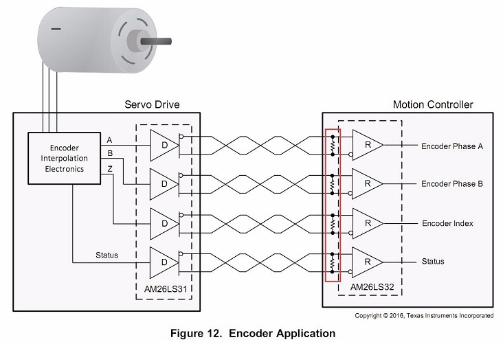 1)、在將差分信號作為傳輸、轉換使用時,在接收端的Y、Z線間,有必要跨接一個電阻(根據傳輸線每100英尺阻抗來定,一般100-120Ω),以減輕信號傳輸線上的信號反射,提高傳輸可靠性(如圖6中的紅框部分)。