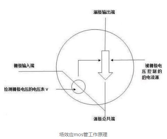 無論N型或者P型MOS管,其工作原理本質(zhì)是一樣的。MOS管是由加在輸入端柵極的電壓來控制輸出端漏極的電流。MOS管是壓控器件它通過加在柵極上的電壓控制器件的特性,不會發(fā)生像三極管做開關時的因基極電流引起的電荷存儲效應,因此在開關應用中,MOS管的開關速度應該比三極管快。其主要原理如圖: