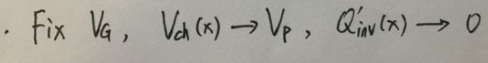 下面我們定義兩個重要的概念:夾斷電壓(Vp, pinch-off voltage)和閾值電壓(Vt0, threshold voltage)。在下圖中,源極和漏極保持等電位,這樣整個溝道的電勢相同。如果固定VG,當溝道電壓增加至Vp時,反型層電荷密度減為0;如果固定溝道電壓為0 V,當VG減為Vt0時,反型層電荷密度減為0。這里的閾值電壓Vt0是定義在整個溝道等電位且電位為0的條件下,因而是一個定值,與之形成對比,傳統(tǒng)模型中的閾值電壓VTH是Vsb的函數(shù)。另外值得注意的是,夾斷電壓Vp的定義不只在源極漏極等電位使才有效,只要溝道中某一點的電壓Vch(x)大于Vp,在該點處溝道就會被夾斷。