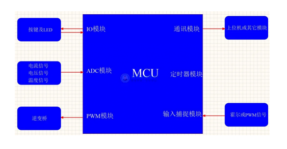 對于一個電機控制系統來說,其實有一些MCU的外設模塊是必須用到的,例如IO模塊、ADC模塊、PWM模塊、通訊模塊、定時器模塊、輸入捕捉模塊。