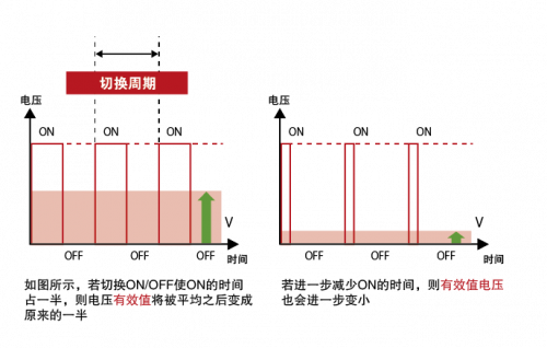 變更某時間內(nèi)的 ON 時間,以變更電壓的有效值。