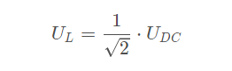 交流端由于是三相,所以應考慮區(qū)分相電壓和線電壓。其中,U點相對V點的交流線電壓 U L 的峰值等于直流母線電壓 UDC,對于SVPWM方式,線電壓 UL 的有效值為直流母線電壓 UDC 的 1 / 2 1/\sqrt{2}1/2,即: