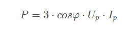 考慮電機A相繞組,其有功功率等于加在它身上的相電壓 Up、通過它的相電流 Ip、當前功率因數(shù) c o s φ cos\varphicosφ 三者的乘積,再考慮共有三個一樣的繞組,所以整個電機的有功功率 P為: