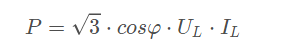 代入上文得到的相電壓 U p U_pUp 和相電流 Ip 的表達式,得到有功功率 P 關于電機控制器線電壓 UUL 和線電流 IL 的表達式: