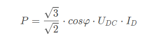 再代入線電壓 UL 和線電流 IL 的表達式,得到有功功率 P 關于直流母線電壓 UDC 和漏極電流 I D I_DID 的表達式: