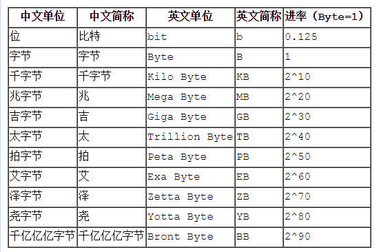 下面的表格中只解釋到這里:BB(千億億億字節(jié)),下面還有更大的單位: