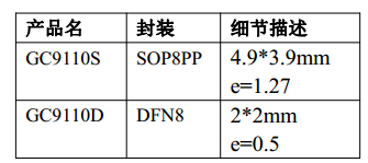 與行業標準器件兼容, 并具有過溫保護功能。GC9110S 是 SOP8pp 封裝,GC9110D 是DFN 封裝。