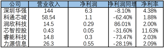 從利潤對比來看,2019 年,深圳華強、科通芯城、潤欣科技、芯智控股、睿能科技、力源信息這 6 家公司除了潤欣科技凈利潤實現了同增之外,其余 5 家均出現了凈利潤下滑,凈利率最高的為芯智控股為 11.63%,凈利率最低的科通芯城凈利率只有 1.88%。