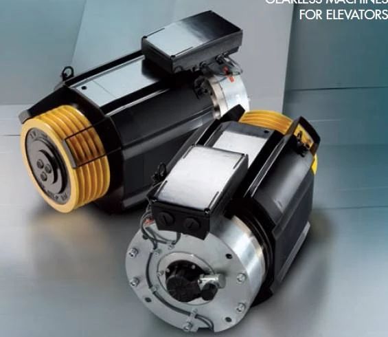 電梯電機通常采用永磁同步電機,主要是由于永磁同步電機易于做成低轉(zhuǎn)速、大功率的優(yōu)點。其結(jié)構(gòu)緊湊,功能齊全,集曳引電機、曳引輪、電磁制動器、光電編碼器于一身,易于安裝,便于使用。特別是在無機房電梯的開發(fā)應(yīng)用中,將永磁同步曳引電機安裝在電梯的井道里,既節(jié)約了機房的建造成本,又美化了建筑物外觀。當(dāng)電梯負載變化時,永磁同步電機通過調(diào)節(jié)夾角來適應(yīng),其響應(yīng)速度很快。