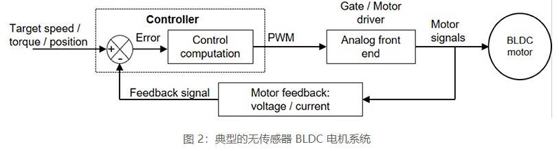 無需編程的電機驅動器包括內置的控制換向算法,因此無需進行電機控制軟件的開發、維護和認證。這些電機驅動器通常從電機獲取反饋(例如霍爾信號或電機相位電壓和電流信號),實時計算復雜的控制方程以確定下一個電機驅動狀態,并為柵極驅動器或金屬氧化物半導體場效應晶體管 (MOSFET) 等模擬前端組件提供脈寬調制信號(如圖 2所示)。