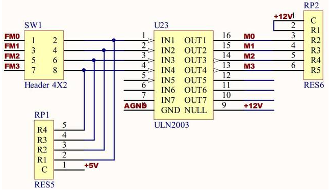 該上拉電阻除了提高驅動能力外,還有一個作用,就是進行電平轉換。經查,ULN2003的接口邏輯為:5V-TTL, 5V-CMOS邏輯。而在3.3V供電的情況下,I/O口可以提供3.3V-LVTTL,3.3V-LVCMOS,3.3V-PCI和SSTL-3接口邏輯電平。因此,需要外接5V的上拉電阻將I/O電平規格變成5V電平邏輯。