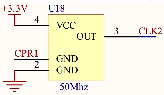 U21D為FPGA芯片的時鐘信號接收部分,通過網絡標號“CLK0~3”與對應的時鐘信號端口相連。