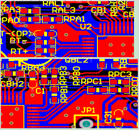 3,運放輸入端及連接的匹配電阻到最終的采樣電阻之間的走線,就盡可能減少過孔的數量(參見樣例十)。