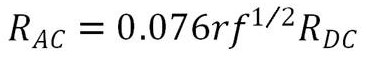 通過上面的公式我們可以地線阻抗的大小是由哪些參數決定的,RDC是導線上的直流電阻值,jwL是感抗。由于RDC是ρ(電阻率)、S(橫截面積)、L(長度)這三個因素決定的。ρ材料的電阻率一般導線制作出來就已經固定了,銅的電阻率為1。所以在直流電中影響電阻的阻值就是導線的橫截面積和導線的長度。根據公式: