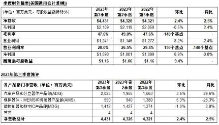 · “第三季度凈營收同比增長2.5%。正如預期,汽車業務持續增長是拉動營收的主要動力,而個人電子產品收入下滑抵消了部分增長空間。”