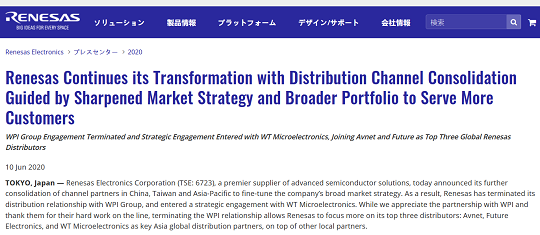 瑞薩電子今日宣布,將進一步整合中國、中國臺灣以及亞太地區的渠道合作關系,調整公司市場戰略,因此將終止與 WPI 集團的分銷關系,并與文曄科技達成戰略合作,目前瑞薩在亞太地區的分銷售只有安富利、富昌電子以及文曄科技。
