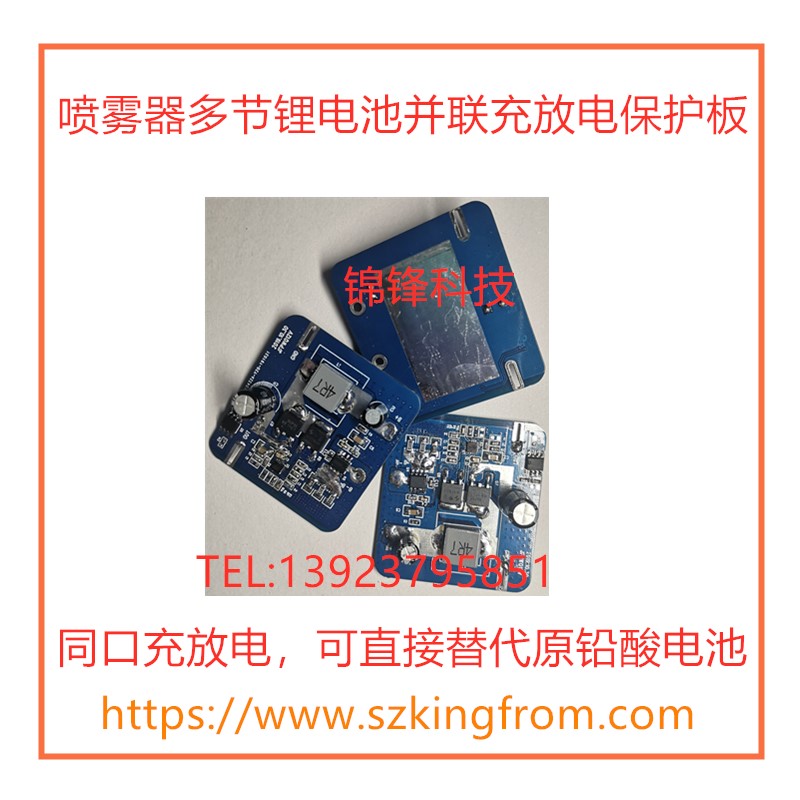 JFPWQ12V模塊是一款外置功率管的120W同步升壓、單節鋰電充電、充放電保護管理電路,支持 5-24V 輸入對鋰電充電,最大充電電流達 3A,輸出電壓12V,輸出電流達到3A,可驅動市面上所有的噴霧器電機,可以做到輸出電壓端與充電端同口,極大的方便客戶,在原來鉛酸電池噴霧器上不需要更改外圍,直接更換我司最新開發的JFPWQ12V模塊即可;采用單節鋰電池并聯直接升壓到12V,無考慮電池電芯的精度,極大的節省成本;鋰電電池相對于鉛酸電池,使用壽命更長,體積與重量更小,更環保,固定輸出12V驅動力更強。