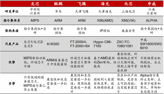 目前我國國產處理器芯片的主要參與者有:龍芯、兆芯、飛騰 、海光、申威和華為等。