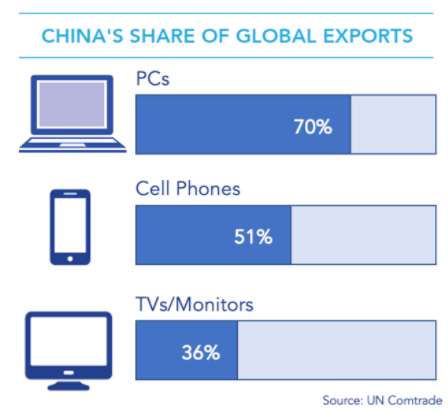 長期以來,中國一直是美國商用半導(dǎo)體的重要市場,占美國芯片銷售總額的三分之一以上。這是因為中國電子組裝大國,成品芯片都要在中國組裝成電路板,然后再將其嵌入到電視機(jī)、智能手機(jī)和筆記本電腦等電子產(chǎn)品中。